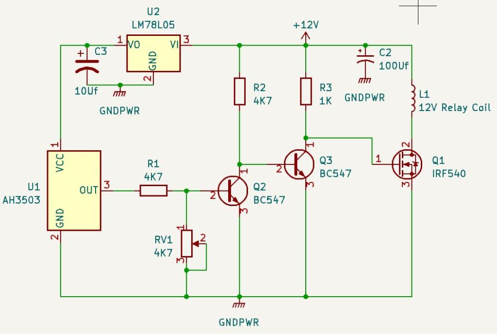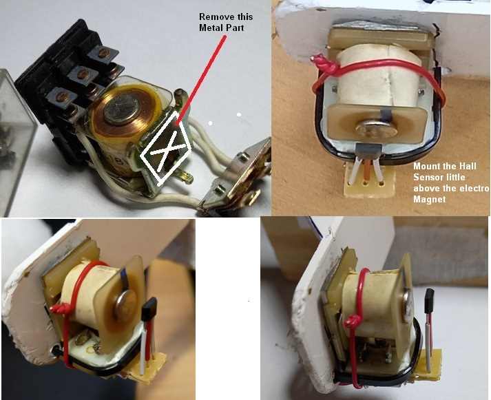 Also the Hall sensor has to be mounted 2-3cm away from the elctromagnet, otherwise it will interact with the magnetic field of the coil.