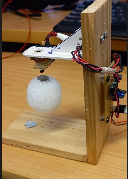 Below shows the Foam ball hanging below the Electromagnet (Levitating)
