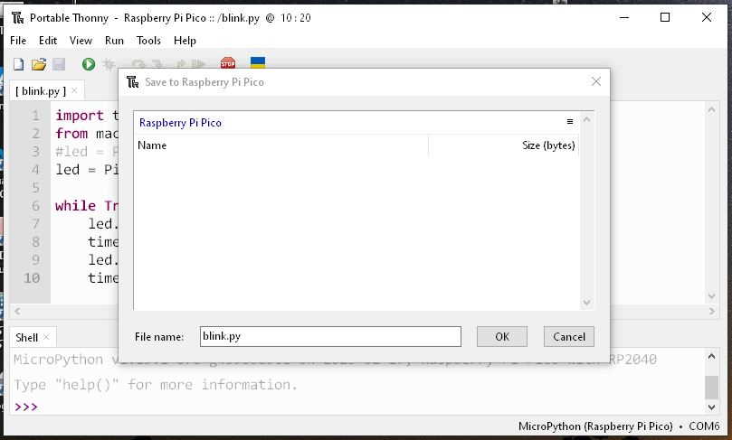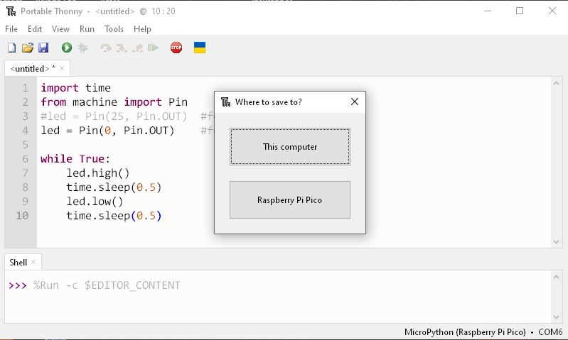 Now, open a new script in Thonny, enter the following script and save as main.py on the Pico and run it.