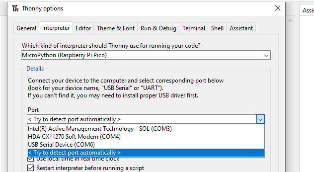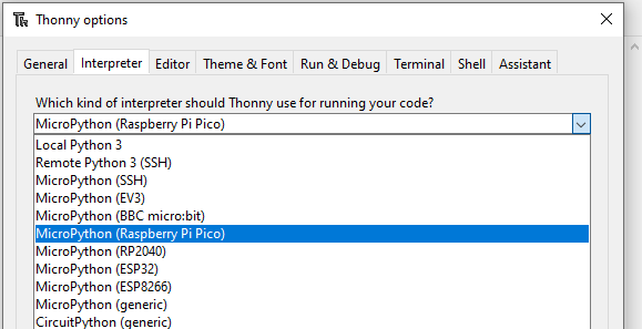 Select option Interpreter as: Micro Python (Raspberry Pi Pico)